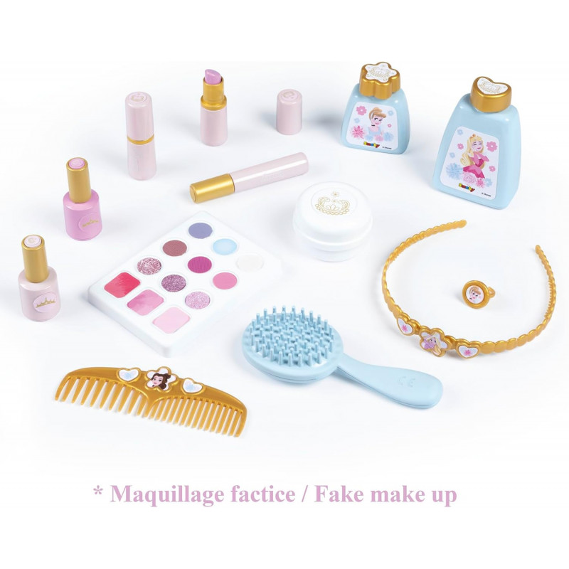 Este estuche reúne tres mundos de belleza: peluquería, manicura y maquillaje. Los 13 accesorios de juguete incluidos son réplicas perfectas y prometen horas de juego.