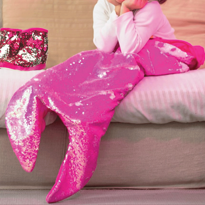 Una cola de sirena para llevar , para pasar días divertidos con amigos o para una fiesta de pijamas inolvidable. La cola está hecha de lentejuelas reversibles, que cambian de color.