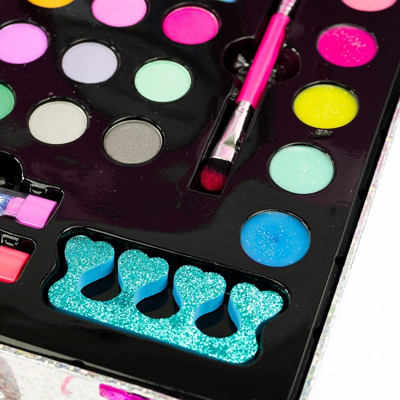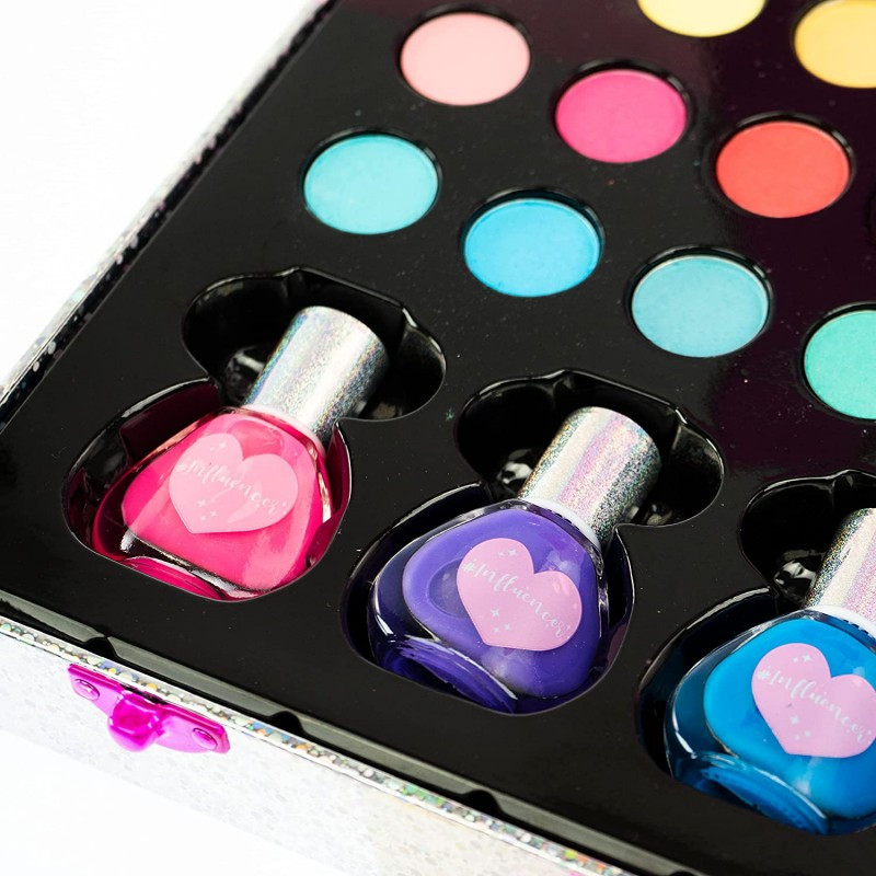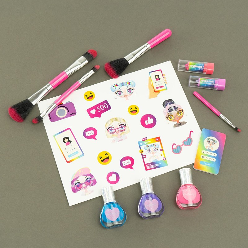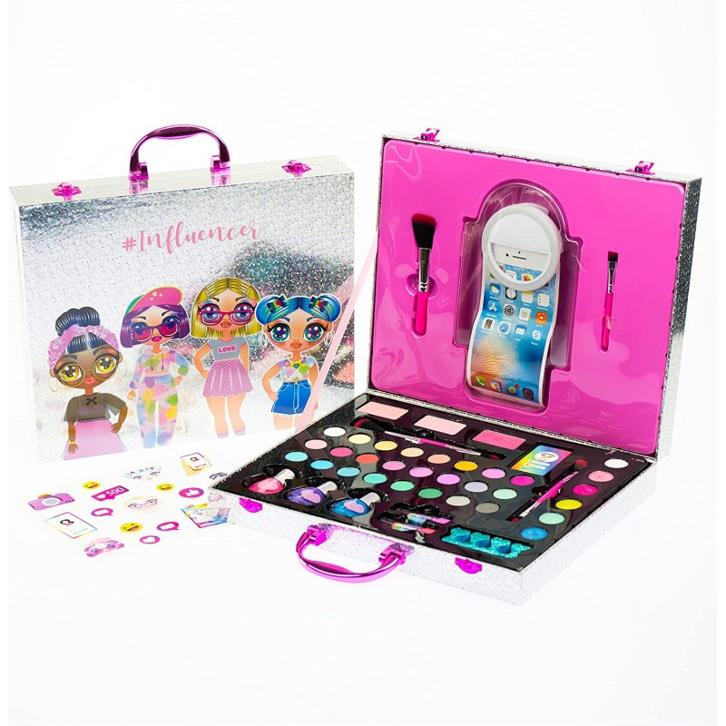 Influencer Selfie Ring Case es el estuche de belleza súper equipado con anillo para selfies, ¡para tomar selfies perfectos! El anillo selfie tiene dos niveles de brillo y es recargable, perfecto para iluminar la cara de cualquier niña.