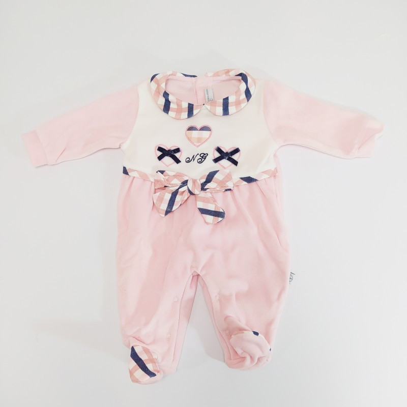El mono Nazareno Gabrielli Chenille es ideal para el período Otoño Invierno. el elegante pelele para bebés adornado con bordados. El pelele tiene una cómoda botonadura, para facilitar el cambio del recién nacido y está disponible en varias tallas.